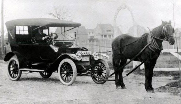 ב-1908 הציג הנרי פורד את מודל טי - המכונית הראשונה שהתאימה לכיסו של מעמד הביניים ונמכרה בכמויות מטורפות. למרות שהיו מכוניות גם חמישים שנים לפני כן, זו הייתה נקודת המפנה שבה המכונית נכנסה למיינסטרים. עד ליציאתו של מודל טי, אנשים תפסו את המכונית כסוג של כרכרה ואף קראו למכוניות הראשונות כרכרות חסרות סוס (horseless carriages).