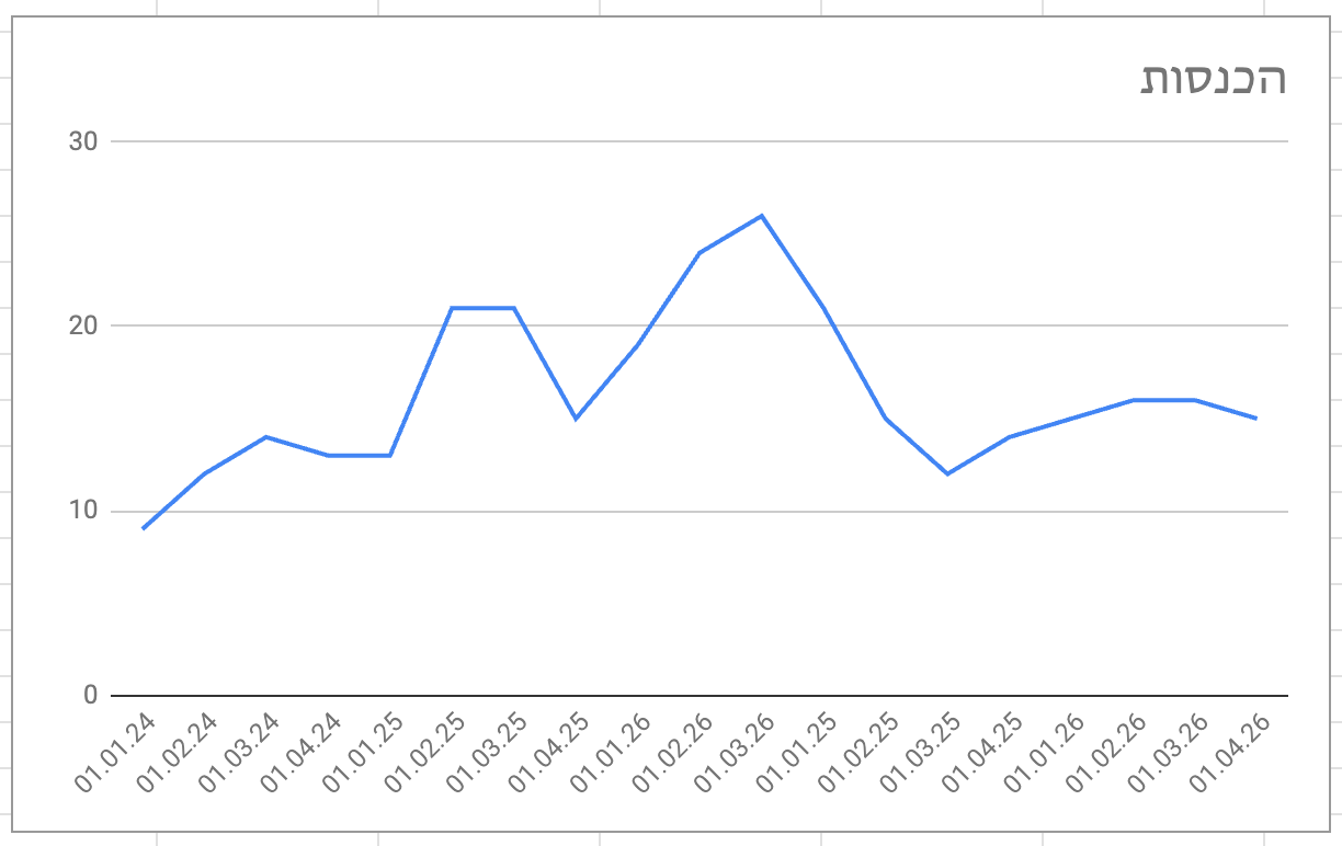 כמנהלים מצטיינים, נדרשנו לספק להנהלת החברה דו"ח על הכנסות החטיבה. לאחר עבודה קשה באיסוף, ניקוי וסיכום הנתונים, קיבלנו את הגרף הבא: